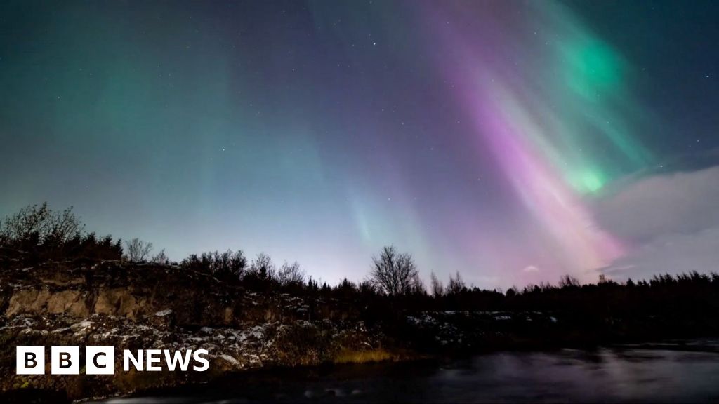 Time-lapse photos have captured the northern lights on the outskirts of the capital Reykjavik. The lights, also known as aurora