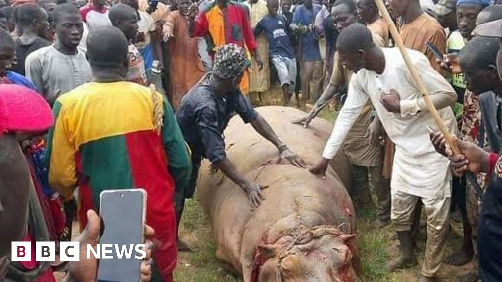 Residents of a town in north-western Nigeria are celebrating after a rare but feared hippo – along with its calf