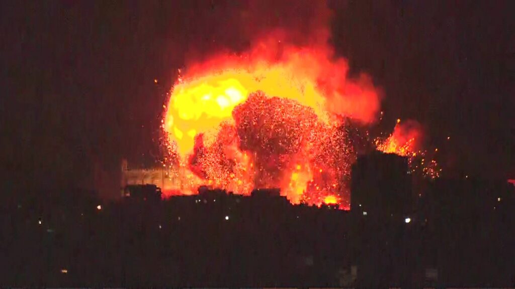 Video footage shows a fireball rising above Lebanon’s capital overnight following another strike on the city. Reports suggest it may