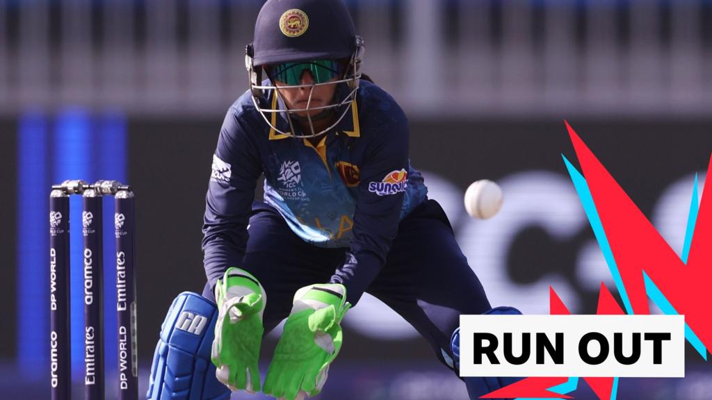 Kavisha Dilhari’s “brilliant piece of fielding” runs Georgia Wareham out for three as Australia slip to 14-2 during their Women’s