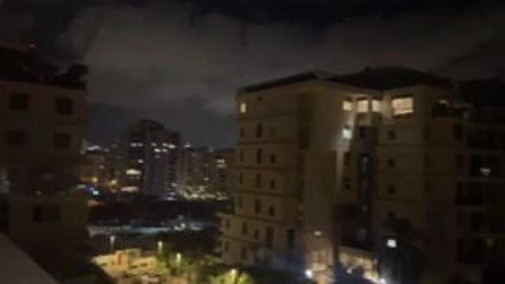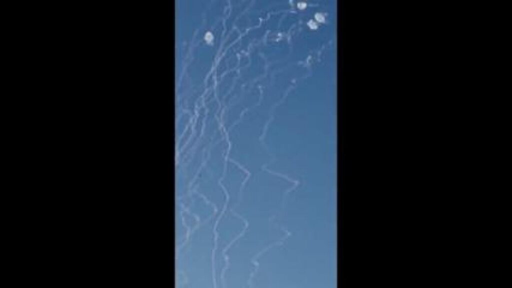 Video appears to show rockets fired from Lebanon landing in Rosh Pina, northern Israel, as others are intercepted. Video appears
