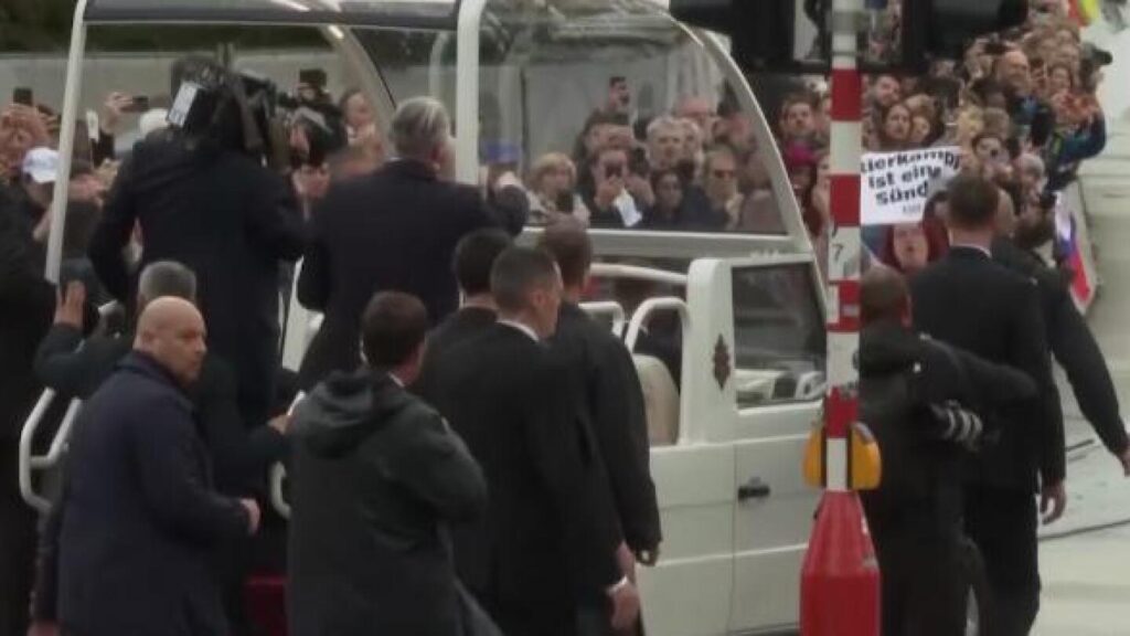 Watch the moment protester runs out in front of popemobile during Francis' Luxembourg visit