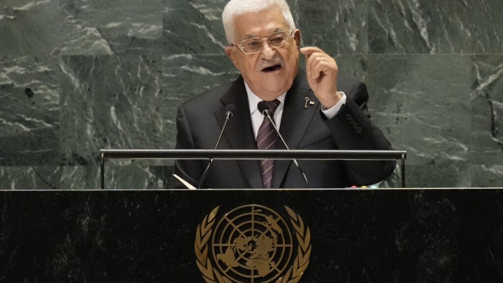 NEW YORK (AP) — The head of the Palestinian Authority denounced Israel and its offensive in the Gaza Strip in