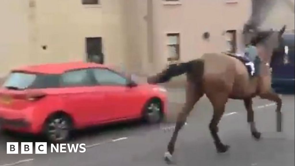 A horse which broke free from a Scottish racecourse has been captured on video galloping through a nearby town around