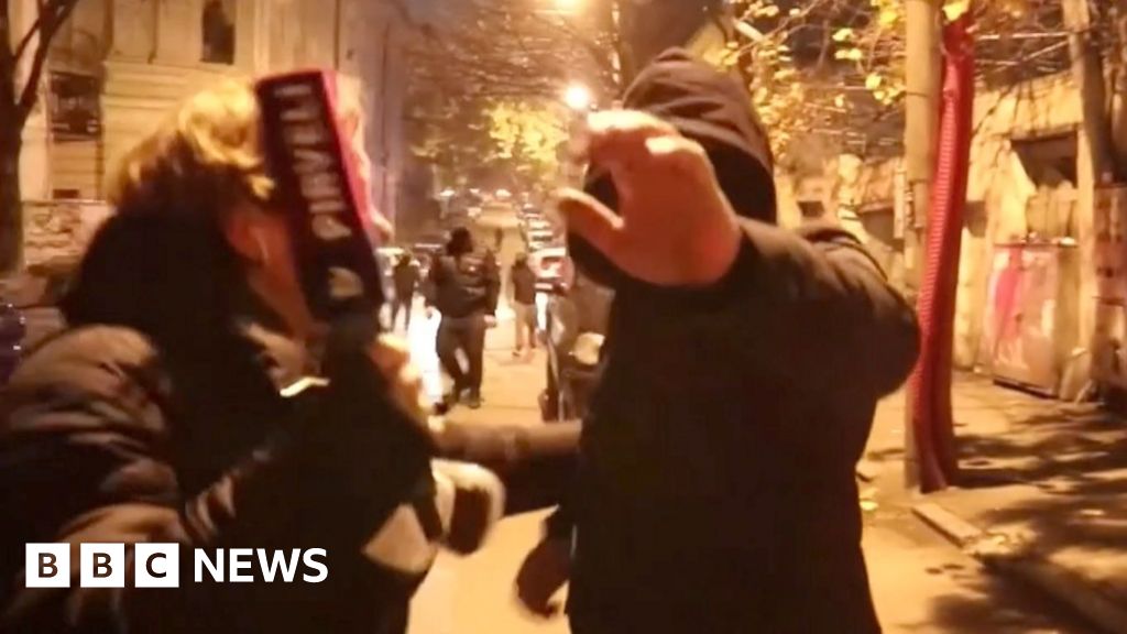 A TV journalist and cameraman have come under attack from masked men while covering pro-EU protests in Georgia. Reporter Maka