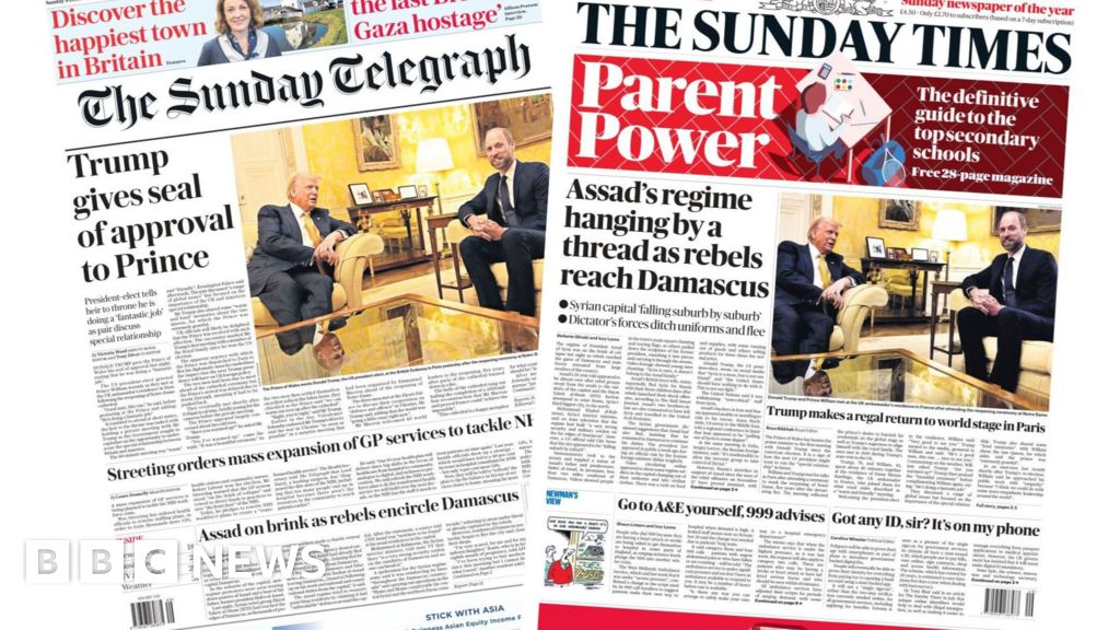 The Sunday Telegraph leads with the meeting between US President-elect Donald Trump and the Prince of Wales. They met on