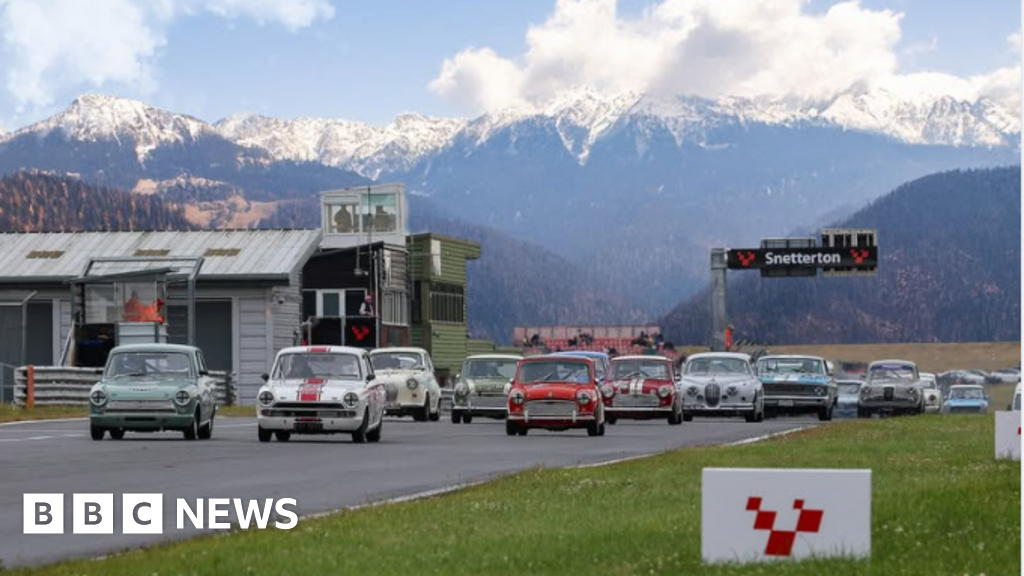 Senna/Causeway Pictures A snow-capped mountain range looms behind racing drivers in the the drama Senna A Netflix series which depicts