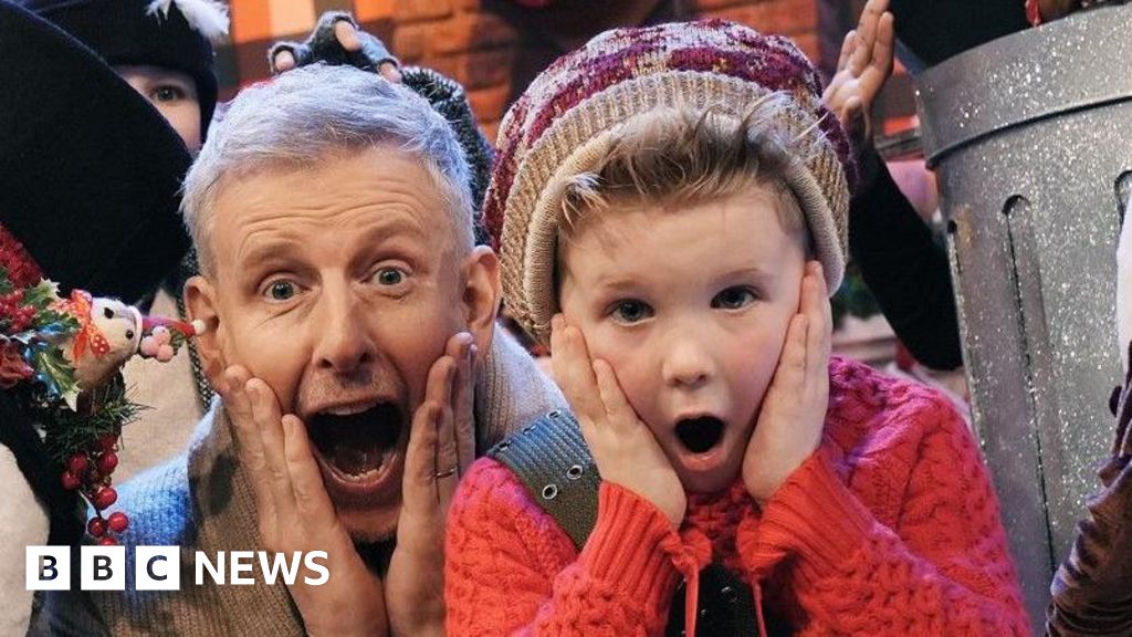 PA Media Patrick Kielty with Louis Hanna (6), from Dublin, (right) and Tara Dowling (5), from Carlow, (left), at the