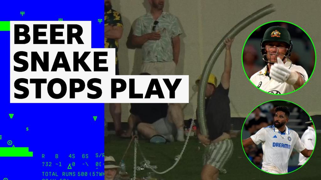Watch the moment a fan with a beer snake distracts batter Marnus Labuschagne forcing bowler Mohammed Siraj to pull out