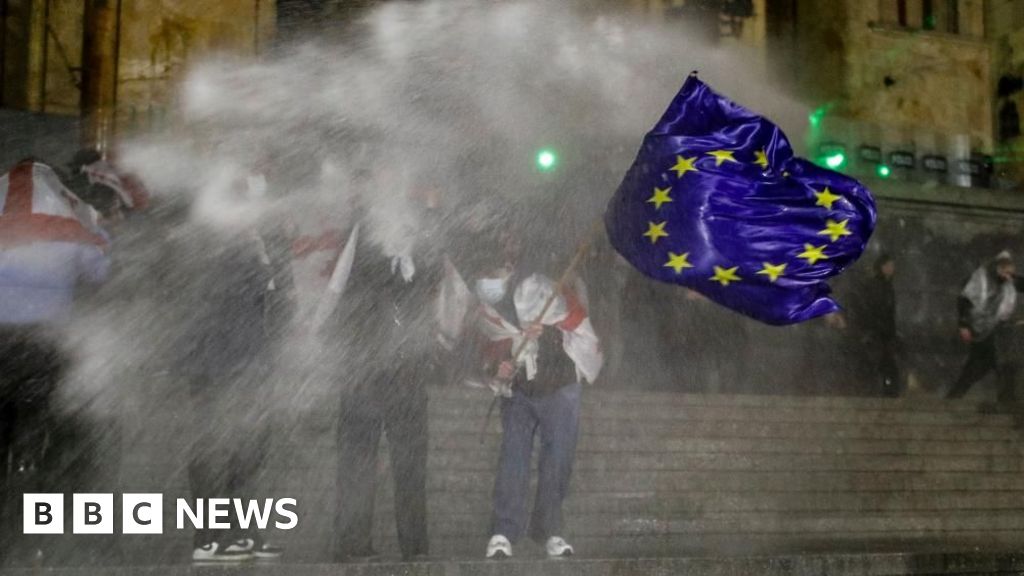 EPA-EFE/REX/Shutterstock On the fifth night of protests, police used water cannon to push people away from parliament Night after night,