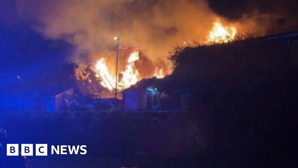BBC Emergency crews were called to a fire in the Benwell area of Newcastle Four people, including a child, have