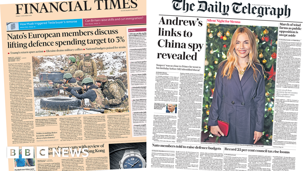 A variety of stories lead the papers. The Financial Times reports that European members of Nato are holding talks about