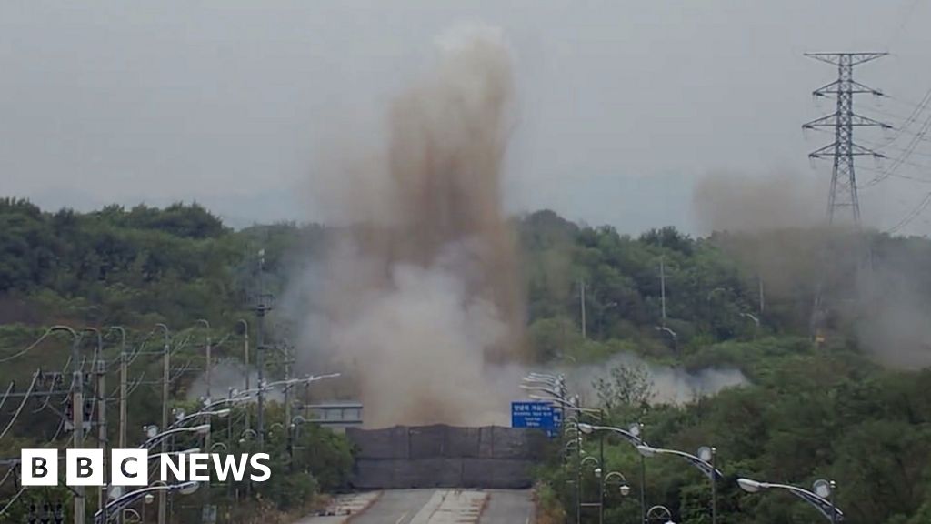 Footage released by South Korea’s Ministry of National Defense shows the moment North Korea blew up roads connecting it to