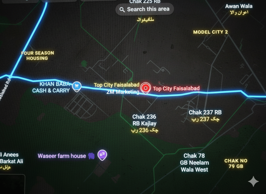To get a detailed view of our location, including interactive features and nearby landmarks, visit our official website. Our location map provides a comprehensive look at how Top City Faisalabad fits into the larger cityscape, helping you visualize its advantages.